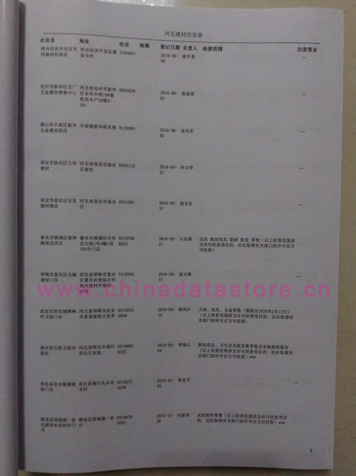 最新河北建材店黃頁(yè)數(shù)據(jù)更新日期2024年12月最新,數(shù)據(jù)準(zhǔn)確率高,是您開展各項(xiàng)營(yíng)銷活動(dòng)的必備資料。名單包括:店鋪名稱、地址、省份、城市、電話、經(jīng)營(yíng)范圍、營(yíng)業(yè)時(shí)間信息。河北建材店企業(yè)黃頁(yè)數(shù)據(jù)為Excel格式,信息可任意修改、復(fù)制、打印,無(wú)任何限制。
