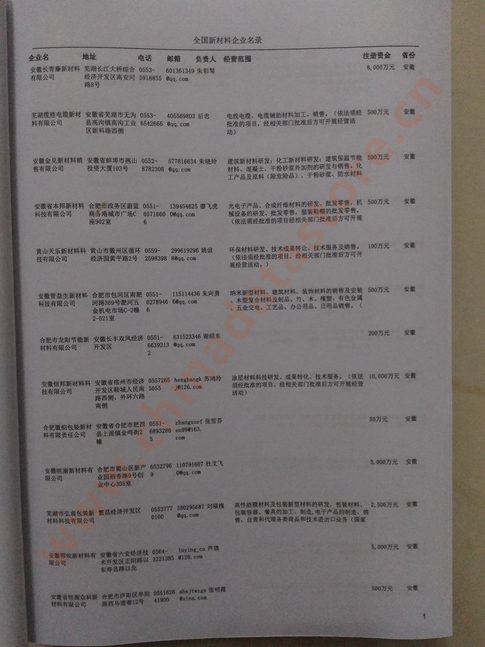 | 全國(guó)新材料企業(yè)黃頁(yè) | 全國(guó)所有新材料企業(yè)黃頁(yè) | 80% - 90% | 3000元 | 附贈(zèng)上下冊(cè)新材料紙質(zhì)印刷品 |
