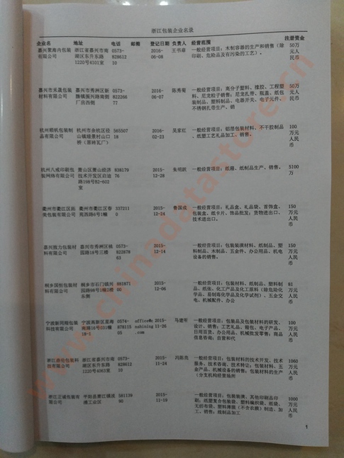 浙江包裝企業(yè)黃頁 所有浙江包裝企業(yè)名單  80% - 90% 600元 附贈一冊浙江包裝紙質(zhì)印刷品