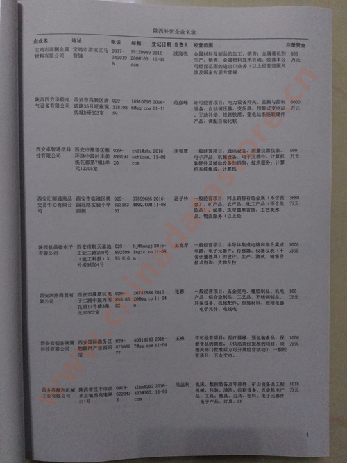 最全陜西外貿(mào)公司黃頁 包括2000年-2024年間所有企業(yè)。