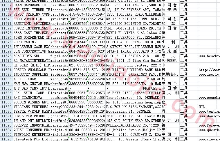 工具采購商名單數(shù)據(jù)為Excel格式,信息可任意修改、復(fù)制、打印、導(dǎo)出及導(dǎo)入到傳真、郵件群發(fā)等軟件中,無任何限制。