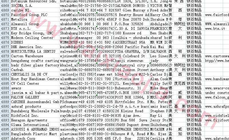 鐵石制品采購商名單數(shù)據(jù)為Excel格式,信息可任意修改、復制、打印、導出及導入到傳真、郵件群發(fā)等軟件中,無任何限制。