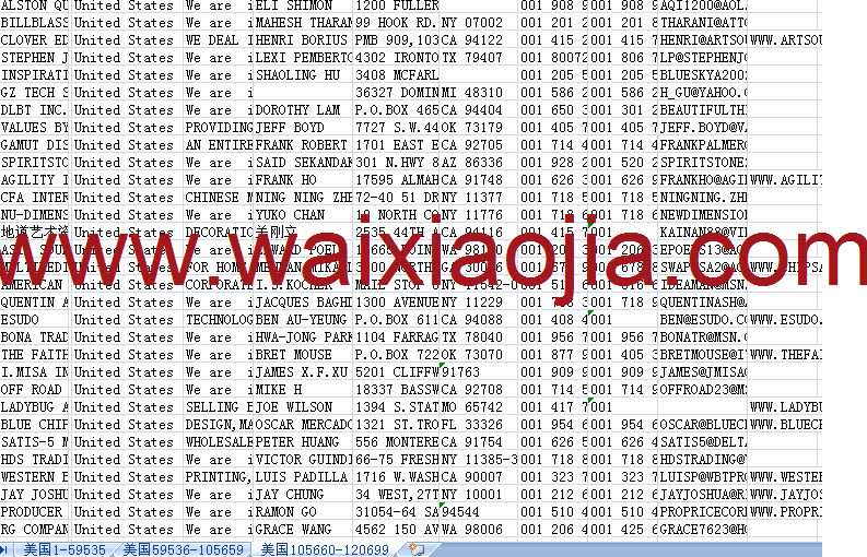 美國采購商名單數(shù)據(jù)為Excel格式,信息可任意修改、復制、打印、導出及導入到傳真、郵件群發(fā)等軟件中,無任何限制。
