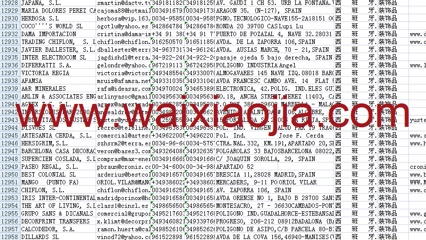 西班牙采購(gòu)商名單數(shù)據(jù)為Excel格式,信息可任意修改、復(fù)制、打印、導(dǎo)出及導(dǎo)入到傳真、郵件群發(fā)等軟件中,無(wú)任何限制。