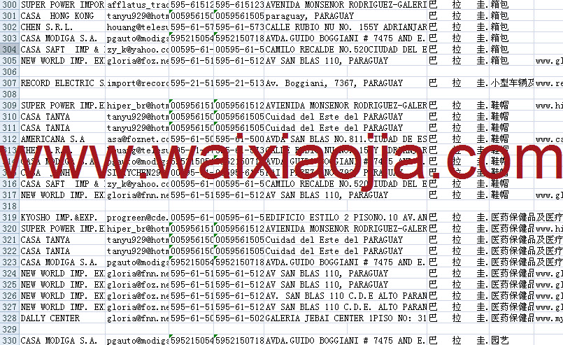 巴拉圭采購商名單數據為Excel格式,信息可任意修改、復制、打印、導出及導入到傳真、郵件群發(fā)等軟件中,無任何限制。