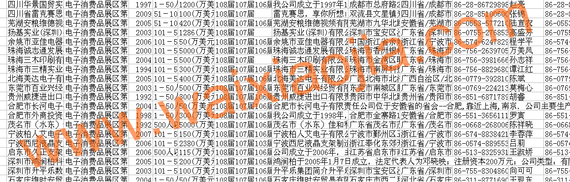 108屆廣交會(huì)參展商黃頁(yè)數(shù)據(jù)為Excel格式,信息可任意修改、復(fù)制、打印、導(dǎo)出及導(dǎo)入到傳真、郵件群發(fā)等軟件中,無(wú)任何限制。